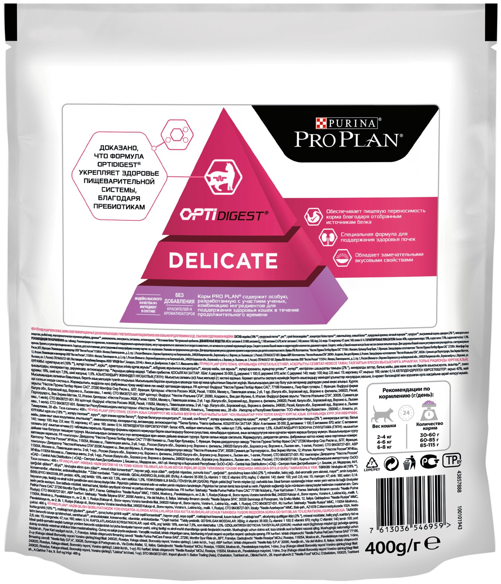 Сухой корм для кошек Purina Pro Plan DELICATE ADULT OPTIDIGEST с чувствительным пищеварением, с индейкой, 8 шт. х 400 г