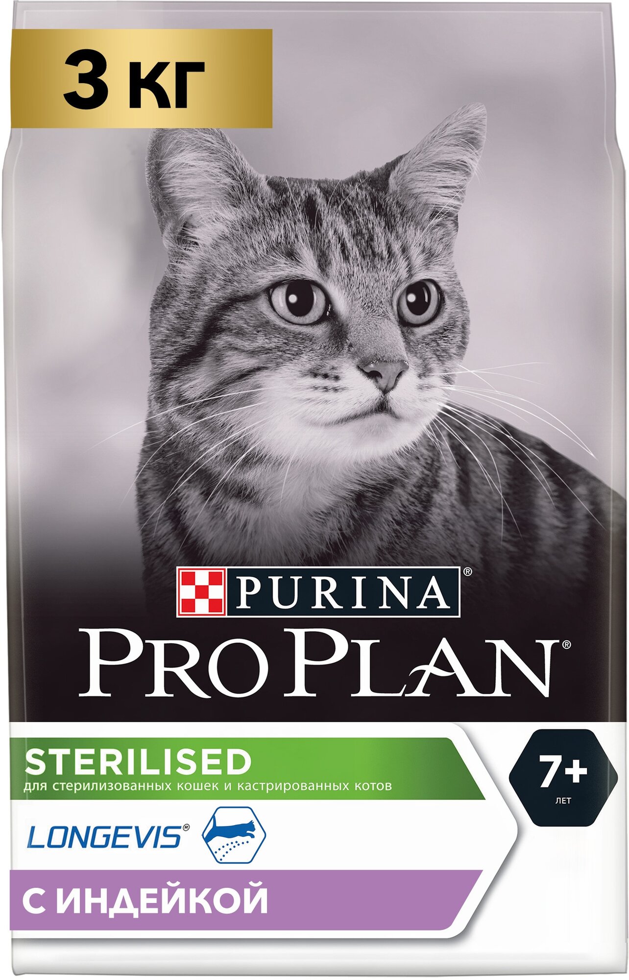 Pro Plan Sterilised 7+ с индейкой для стерилизованных кошек и котов старше 7 лет, 3 кг