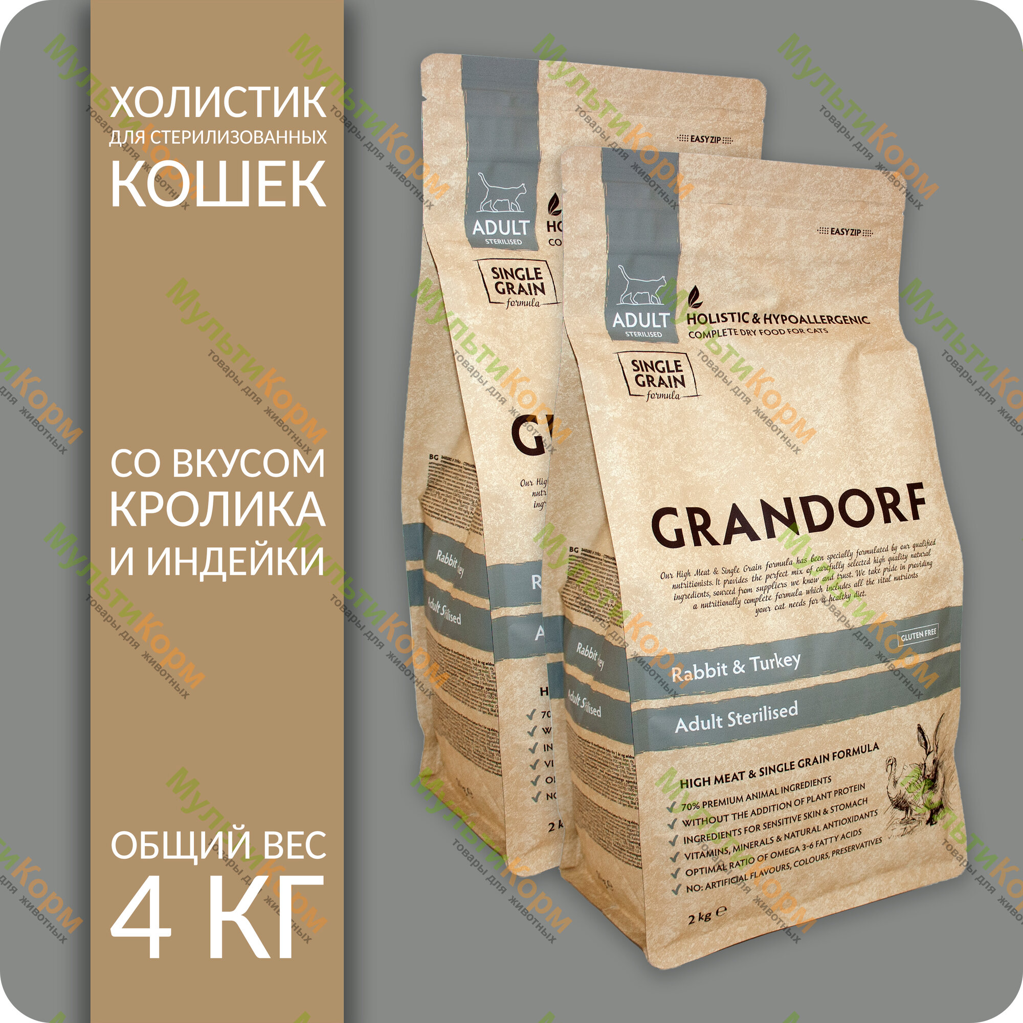 Корм для кошек Набор: Сухой корм Grandorf: кролик И индейка для стерилизованных кошек, 4 кг (2 кг + 2 кг) (GD Steril 2 N*2)