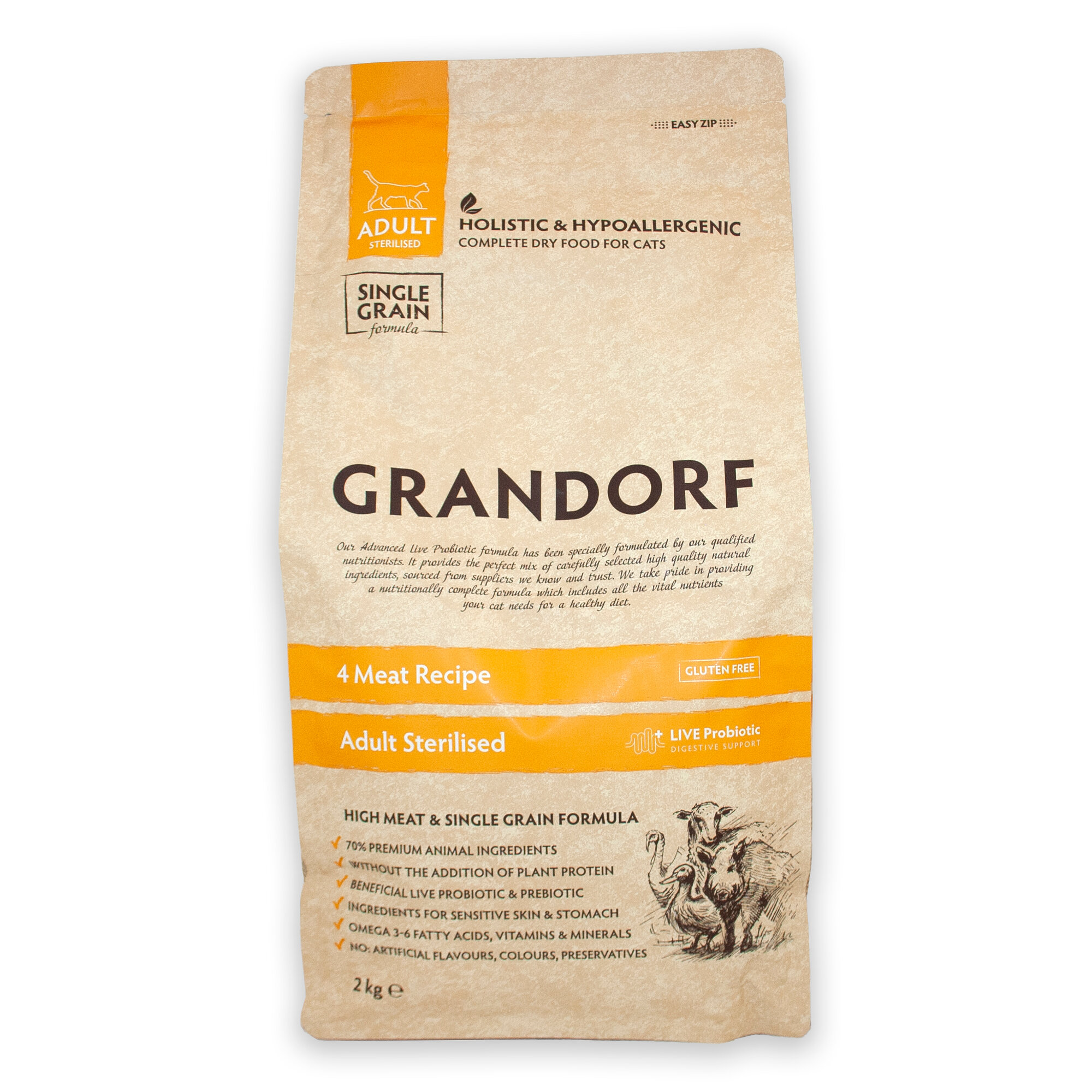 Корм для кошек Набор: Сухой корм Grandorf: ягненок,утка,кабан И индейка для стерилизованных кошек, 4 кг (2 кг + 2 кг) (GD Steril Pro 2 N*2)