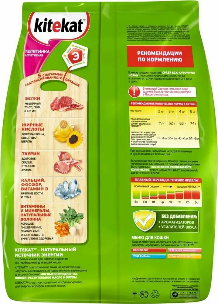 Корм для кошек Kitekat, Сухой корм для кошек Телятинка аппетитная ,700 гр сухой корм китикет для взрослых кошек, 2 шт по 350 гр