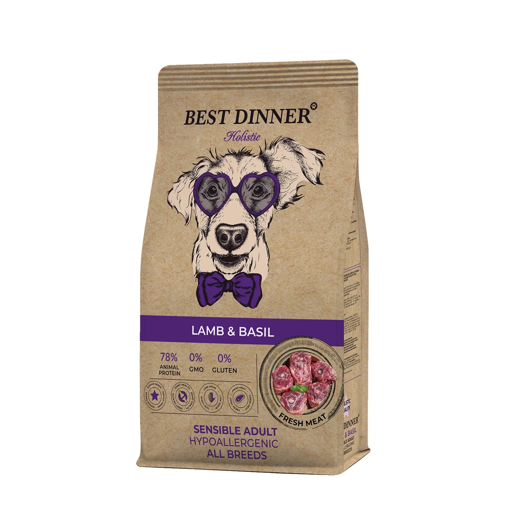Best Dinner Holistic Adult Sensible Hypoallergenic All Breeds Lamb&Basil сухой корм для взрослых собак с ягненком и базиликом - 3 кг