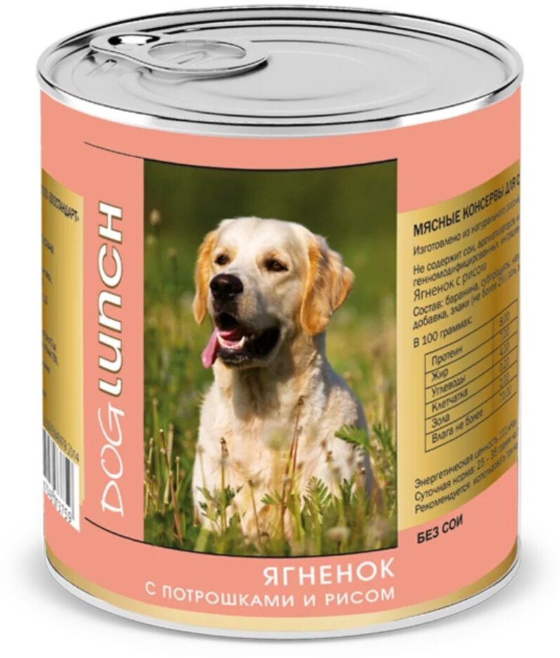 Dog Lunch консервы для собак Ягненок с потрошками и рисом в желе 750г х1шт