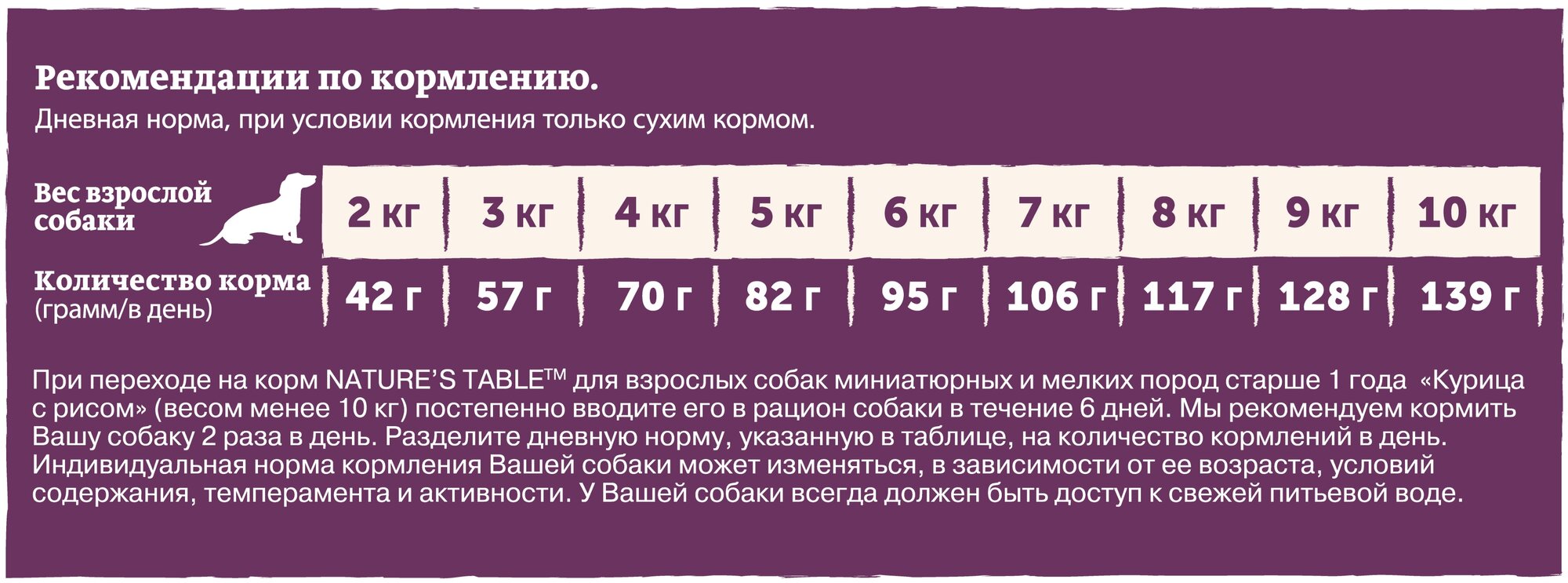 Nature`s Table корм для взрослых собак малых пород, курица и рис 2,3 кг