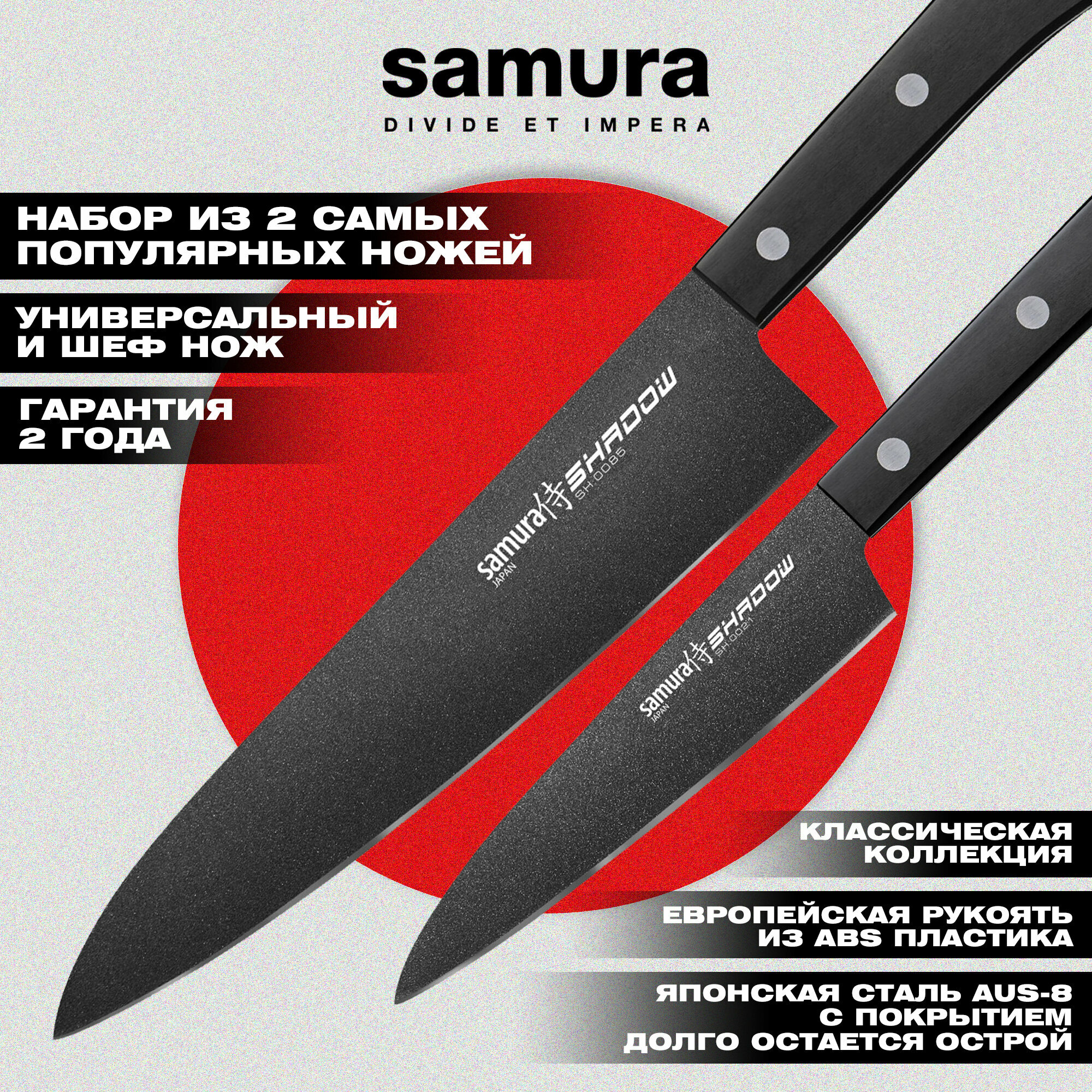 SH-0210/K Набор из 2 ножей "Samura SHADOW" с покрытием Black-coating (21, 85), AUS-8, ABS пластик