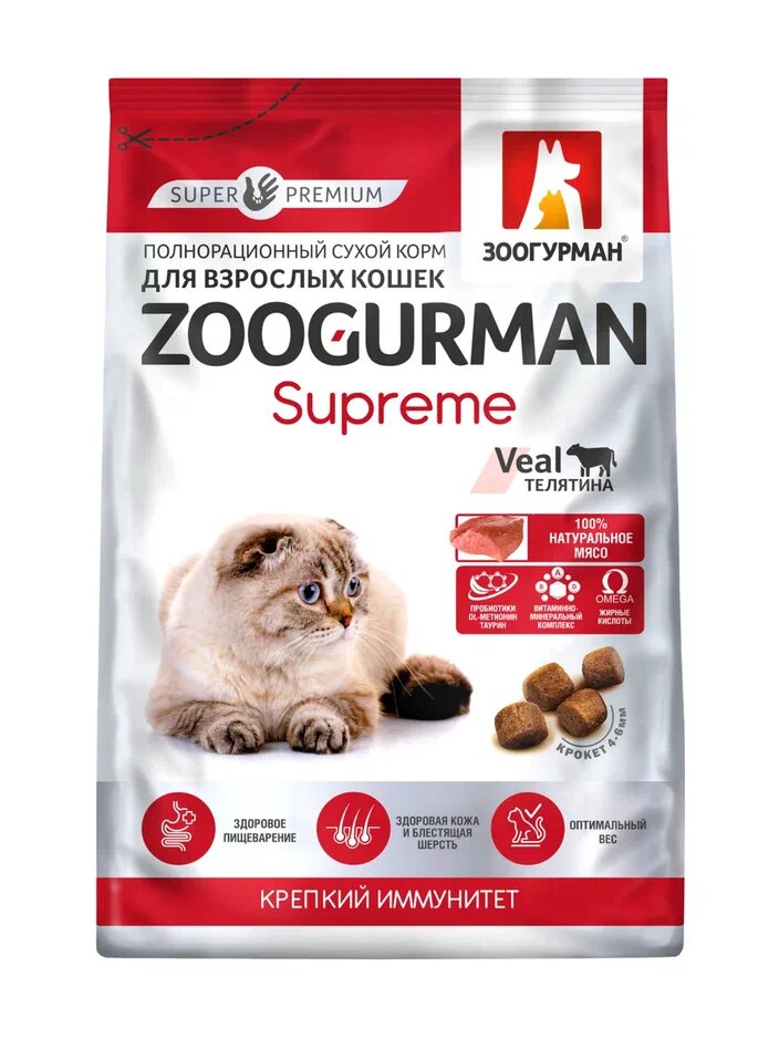 Сухой корм для кошек Зоогурман Supreme, Телятина 350г 407 ₽ Подробнее