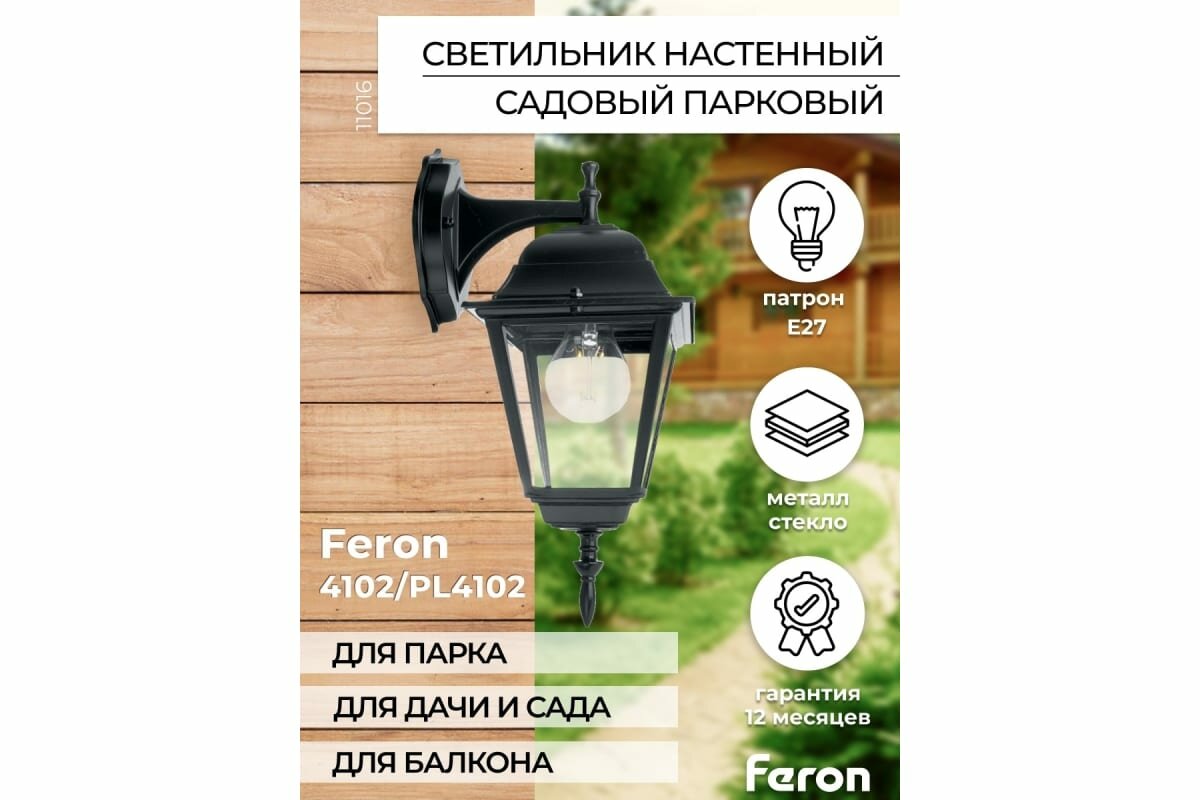 Светильник садово-парковый 4102/PL4102 четырехгранный на стену вниз 60W E27 230V, черный, FERON 11016 (1 шт.)