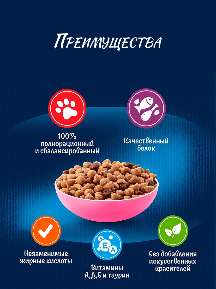 Корм для кошек сухой Феликс Двойная вкуснятина с курочкой для котят до 1 года, хрустящие гранулы и мягкие кусочки с курицей 600г / кошачья еда для