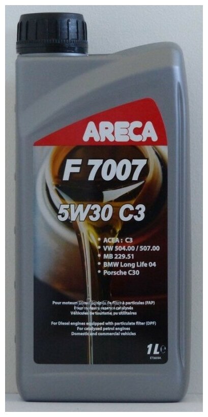Areca Areca F7007 5w30 А3/В4 C3 Масло Моторное Синт.(Vw 504.507) (1l)_пл