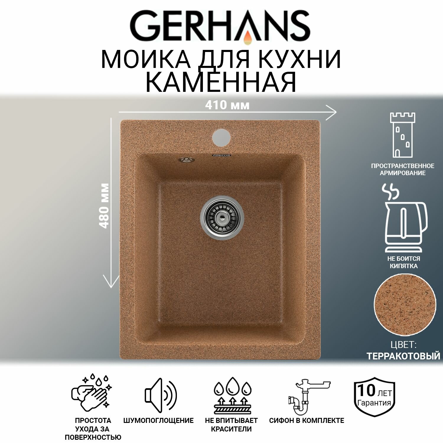 Кухонные мойки Мойка для кухни Gerhans A10-23 Терракот 410х480мм (Беларусь)