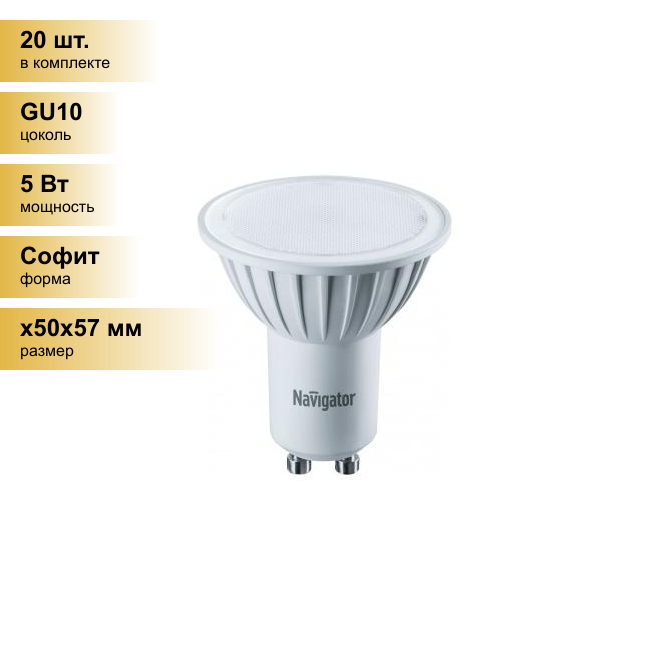 Лампочки Лампа светодиодная 94 264 NLL-PAR16-5-230-3K-GU10 | код. 94264 | Navigator (20шт.в упак.)
