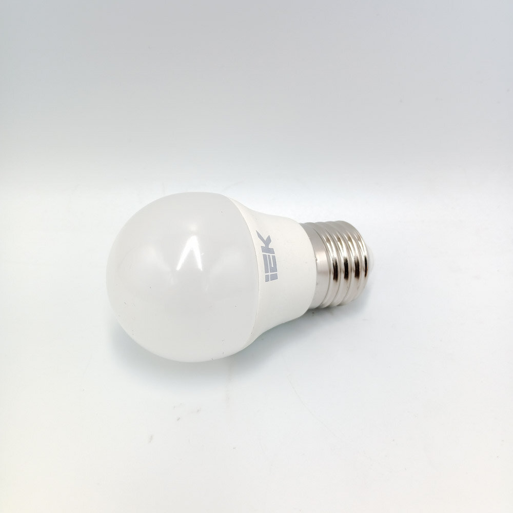 (1 шт.) Светодиодная лампочка IEK G45, мощность 5 Вт, напряжение питания 220 В, цоколь E27, цветовая температура 3000K, теплый белый свет, световой поток 450 Лм, размер 45x84,6 мм