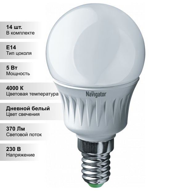 Лампа светодиодная E14 Navigator Шар, 5Вт, 4000К, лампочка 1 шт. 94478