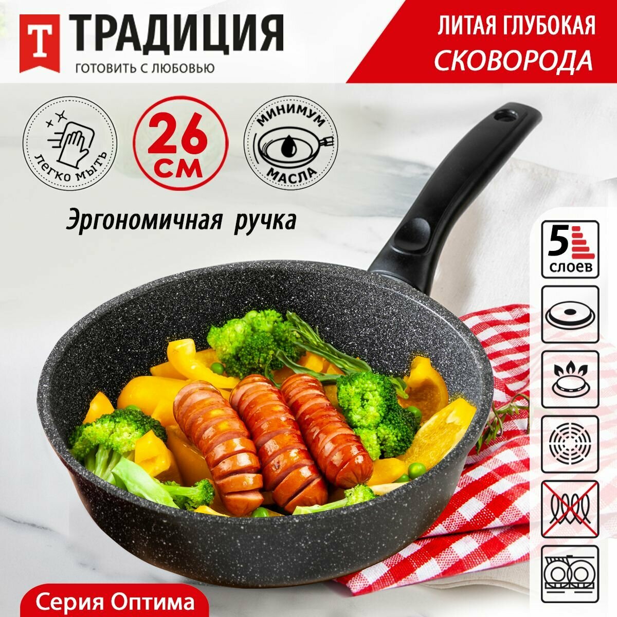 Сковорода антипригарная литая 26см Оптима ТМ Традиция готовить с любовью 1 249 ₽ Подробнее