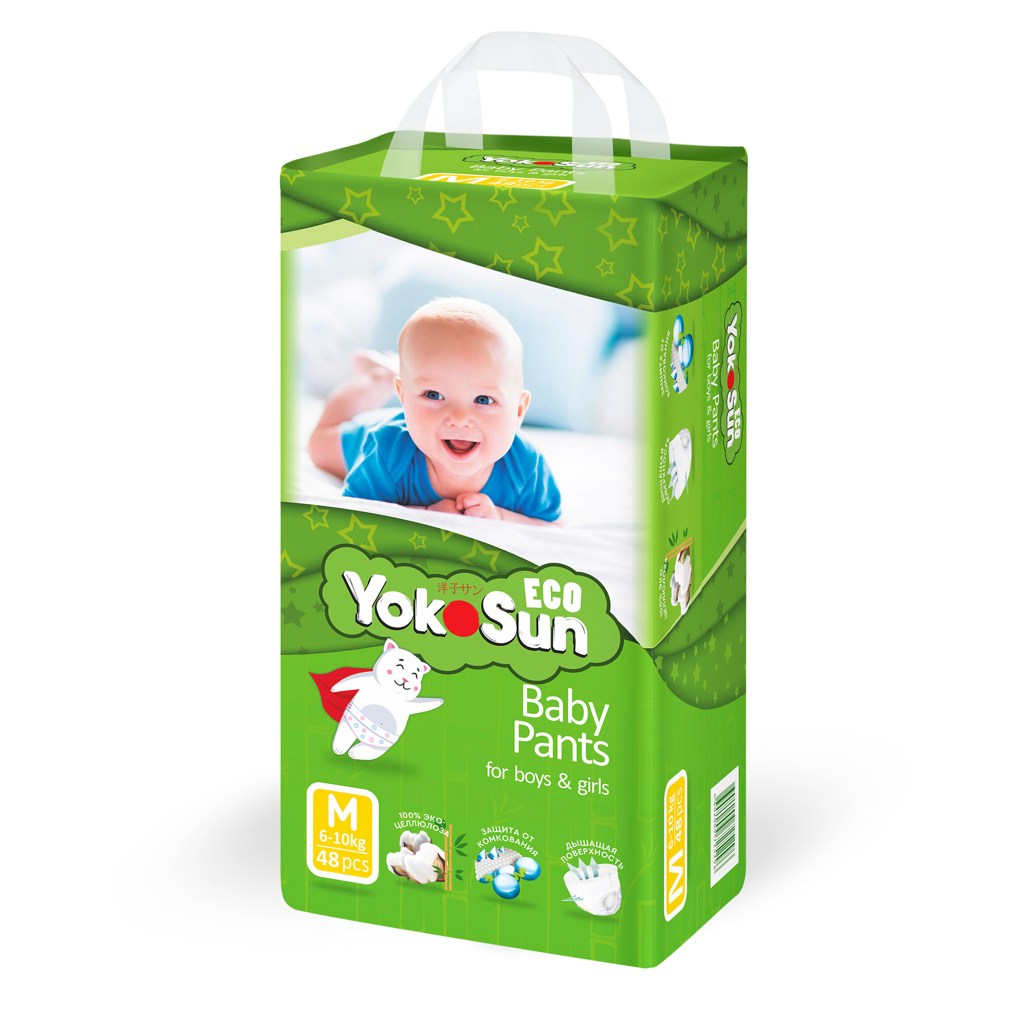 Детские подгузники-трусики YokoSun Eco размер М (6-10 кг), 48 шт.