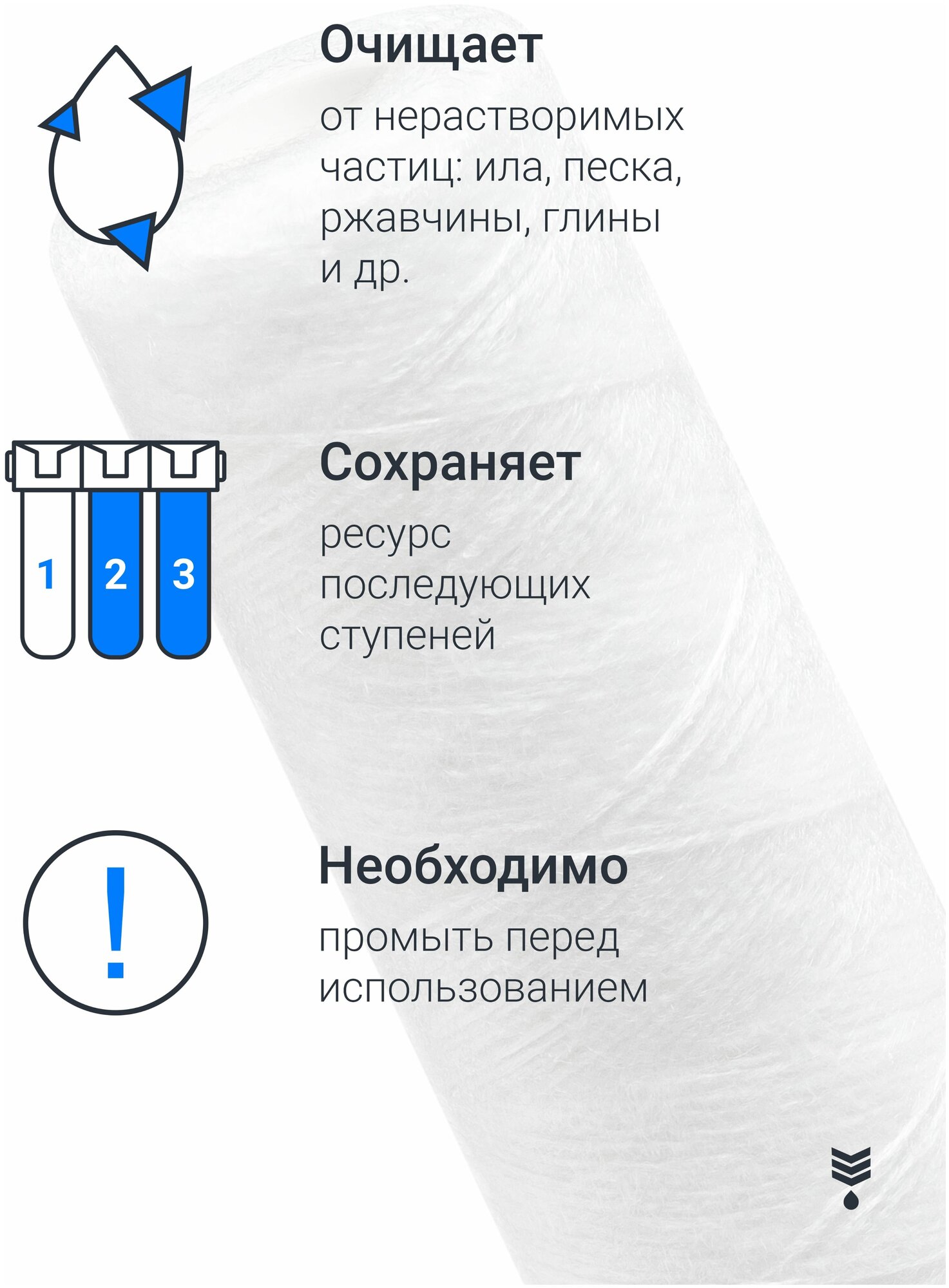 Картридж из полипропиленовой нити Адмирал ФПН-10-1 мкм (ЭФН 63/250, PPY, ВП-10М), веревочный фильтр грубой очистки воды для Гейзер, Барьер, Аквафор