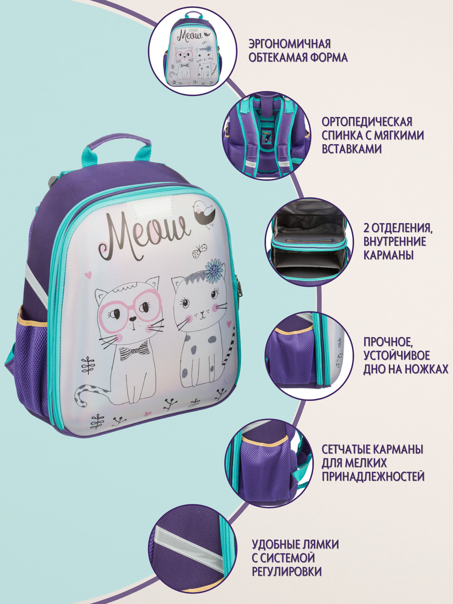 Ранец Basic Meow, 2 отд., эргоном. спинка, экокожа