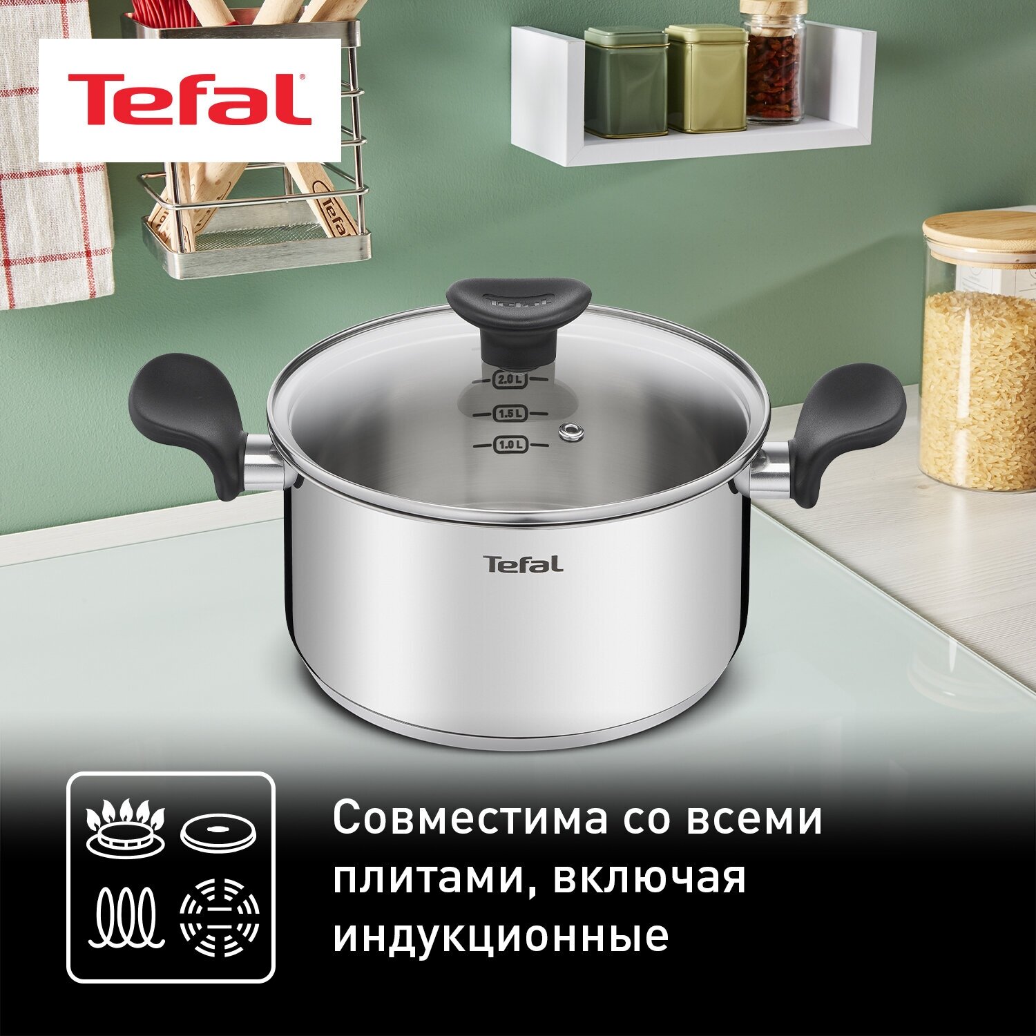 Кастрюля Tefal Primary, нержавеющая сталь, с крышкой, 2,1 л, 18 см
