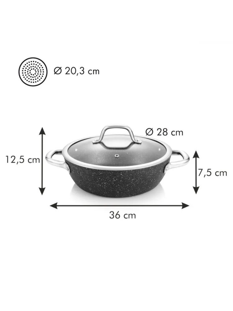 Сковородка Сотейник с крышкой сковорода глубокая с 2 ручками с антипригарным покрытием для индукционной плиты Tescoma President Stone 28 см