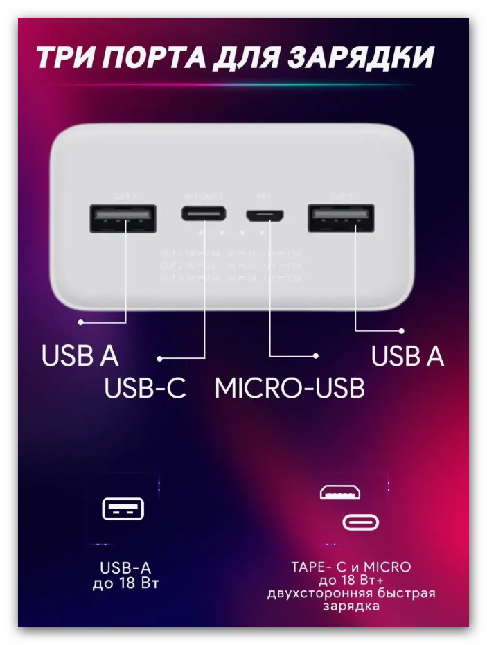| Входы зарядки powerbank'a | USB type C |
