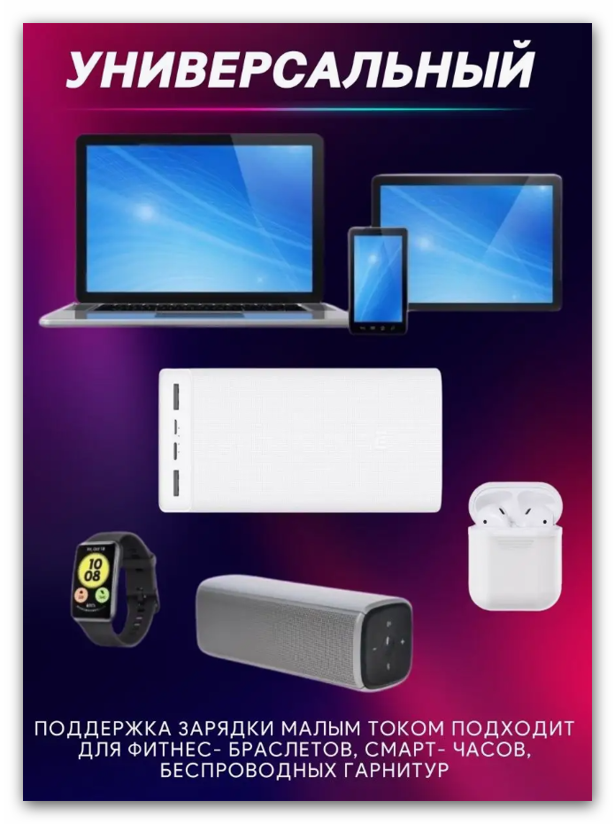 | Ток заряда USB type С | 5V/3А, 9V/3А, 12V/3А, 15V/3А, 20V/2.25A |
