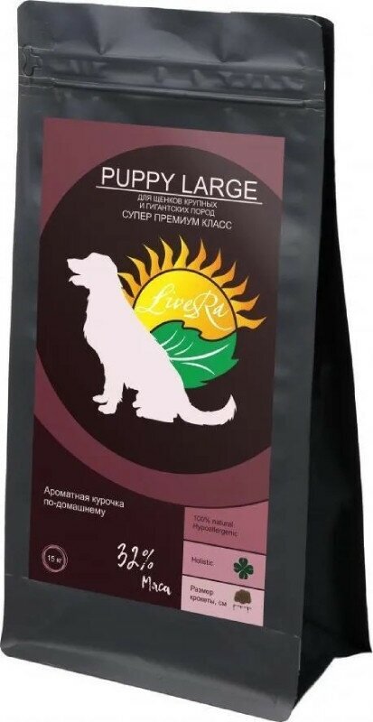 LiveRa Полнорационный сухой корм для щенков гигантских пород Puppy Large, 15 кг