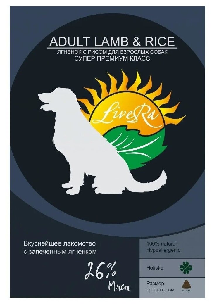 LiveRa Полнорационный сухой корм для взрослых собак Lamb & Rice, 7 кг - вкус ягнёнок с рисом
