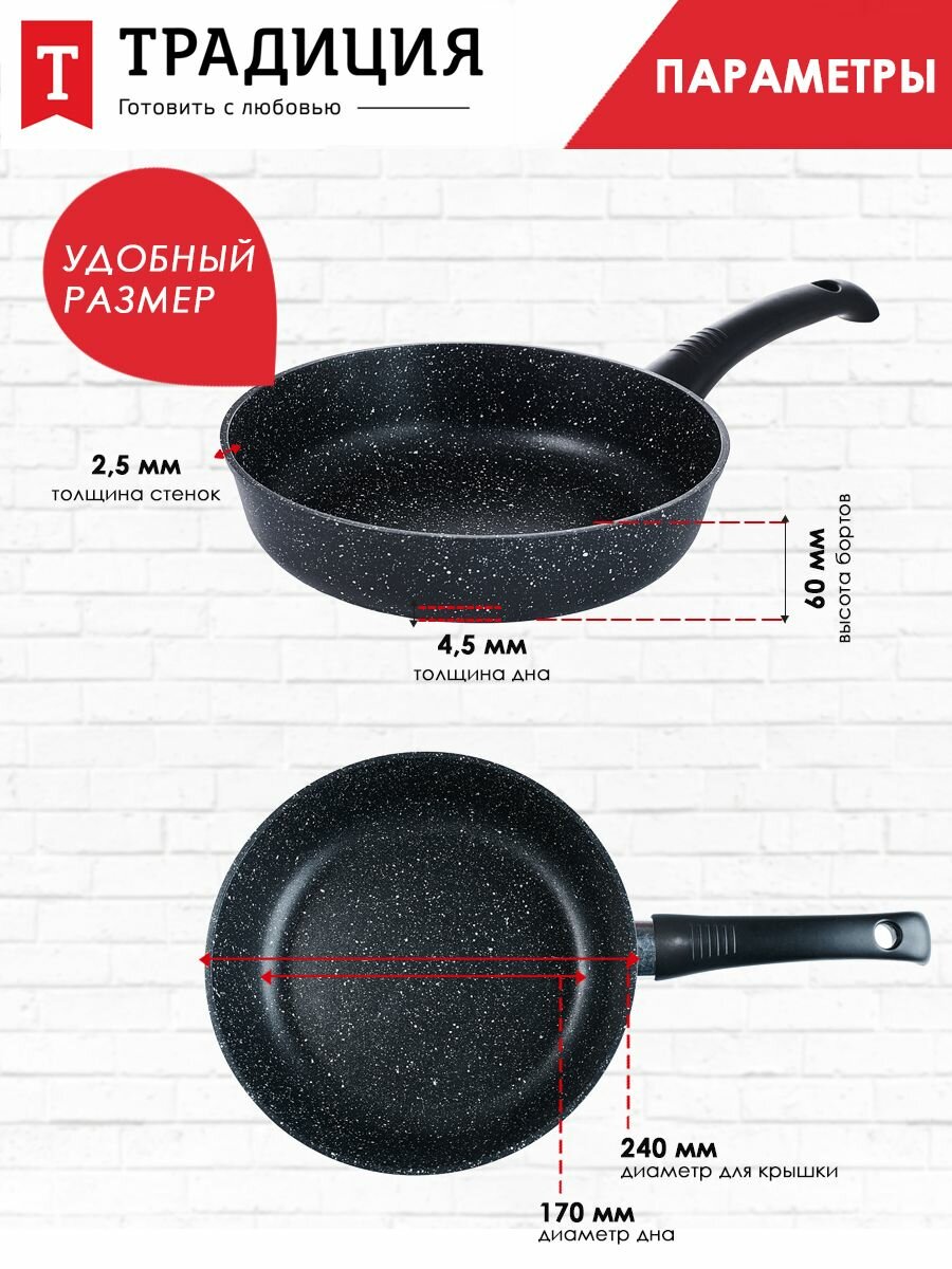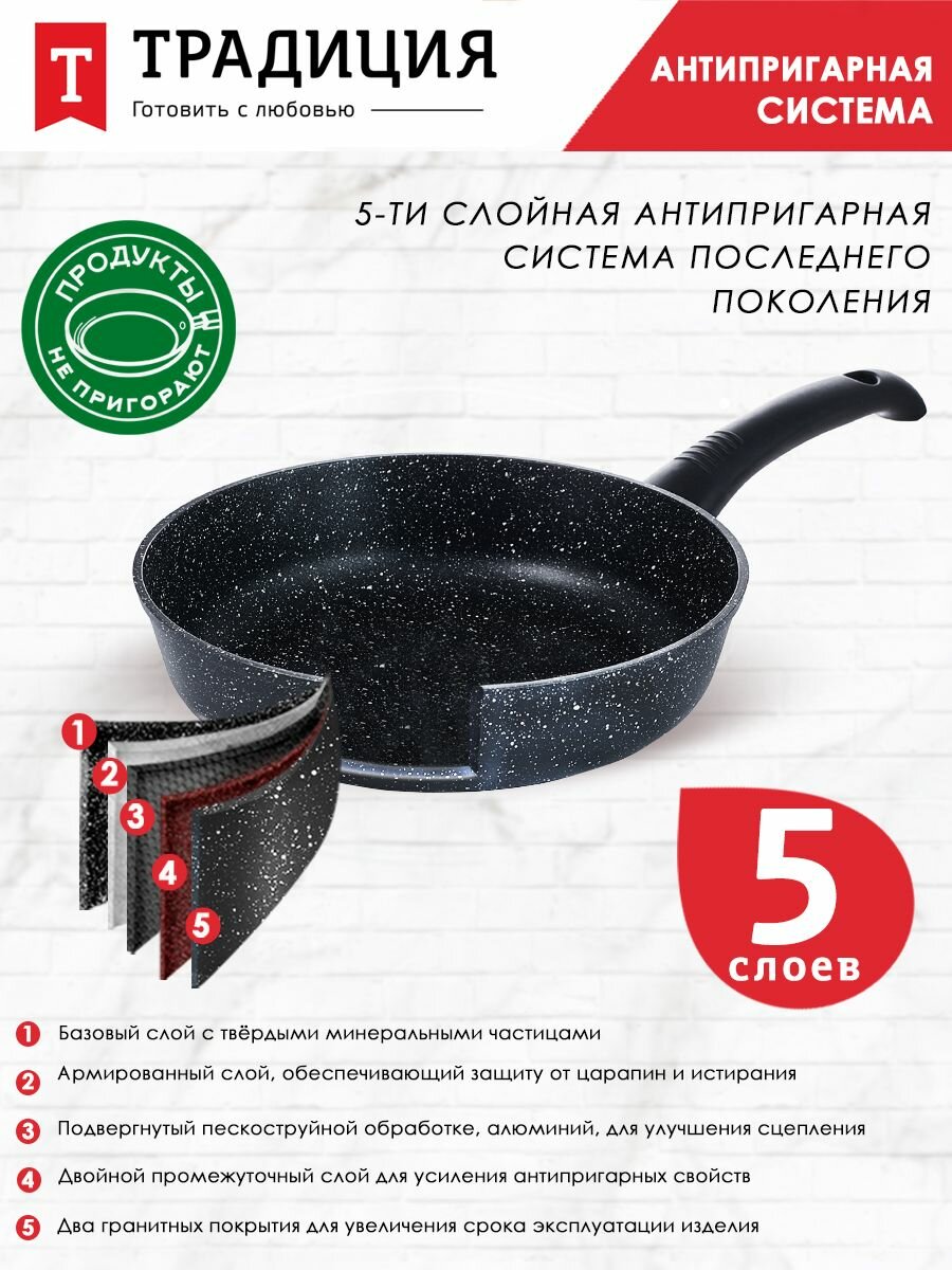 Сковорода традиция ТП2261И антипригарное покрытие, литая, 26 см, черный