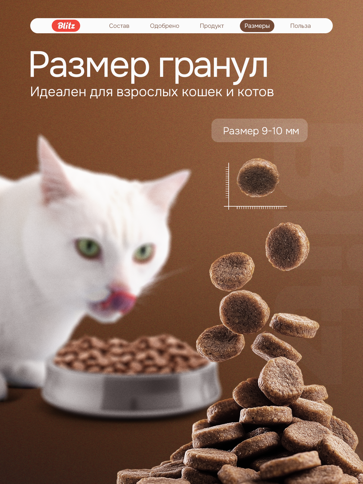 Корм для кошек сухой Blitz / Блиц Sensitive для взрослых животных, гранулы с индейкой 400г / кошачья еда для ежедневного кормления