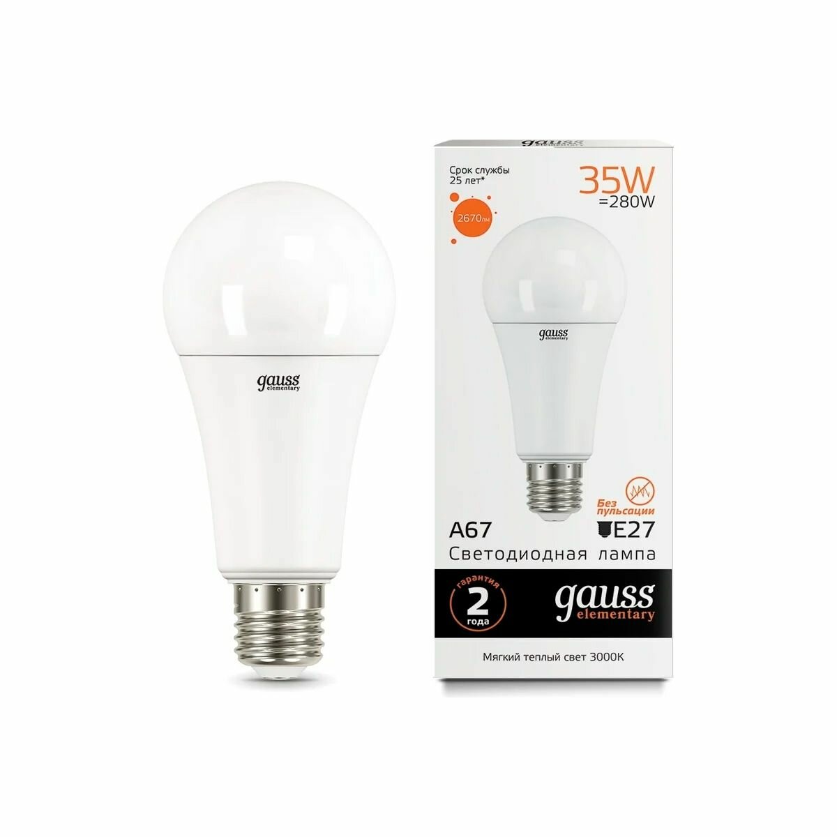Лампочки Лампа светодиодная (LED) груша 35Вт 220В E27 3000К 2670Лм 70215 gauss