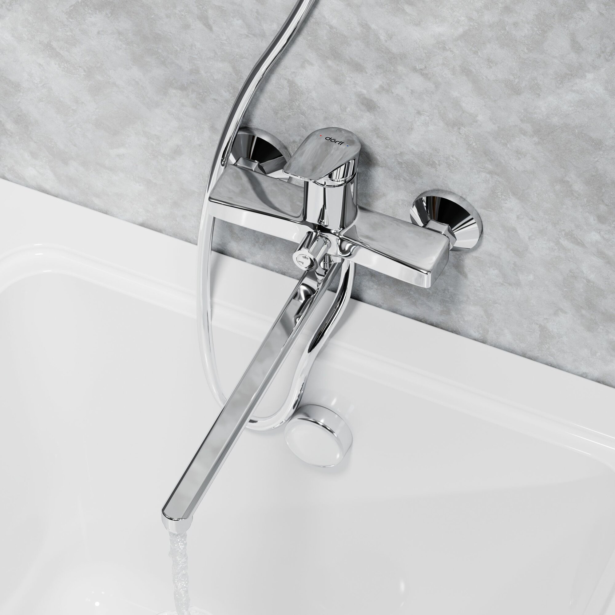 Смеситель Смеситель для ванны Dorff Ultra D5095000 с душевым комплектом, универсальный поворотный излив 322 мм, шланг с защитой от перекручивания
