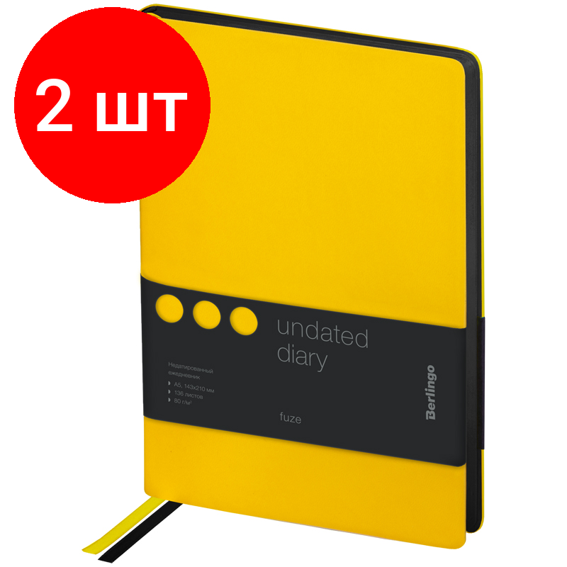 Ежедневник Комплект 2 шт, Ежедневник недатированный, А5, 136л., кожзам, Berlingo "Fuze", цветной срез, желтый