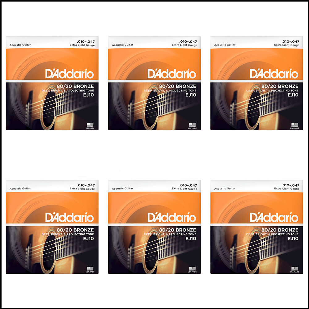 Струны Струны для акустической гитары D'Addario Bronze 80-20 EJ10, набор из 6 упаковок 10-47