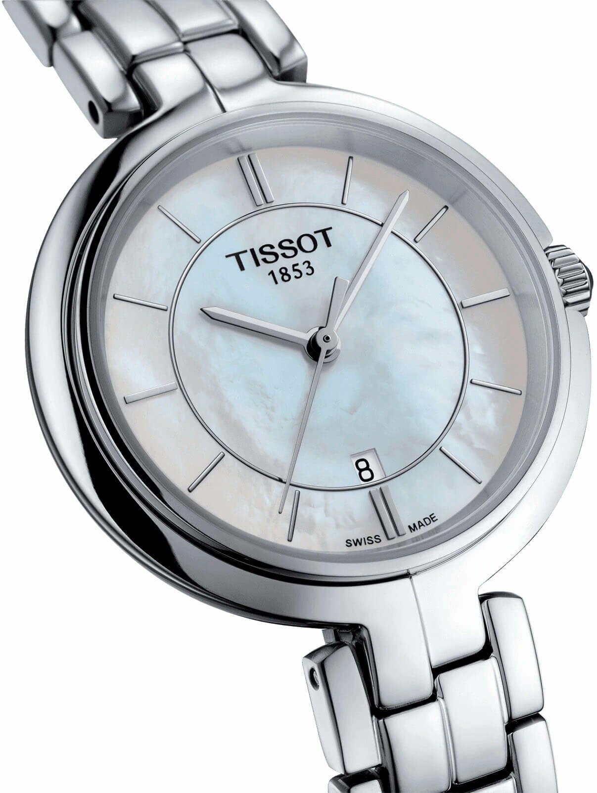 Швейцарские кварцевые часы Tissot Flamingo T094.210.11.111.00 на стальном браслете, с водозащитой 5 бар и международной гарантией от производителя