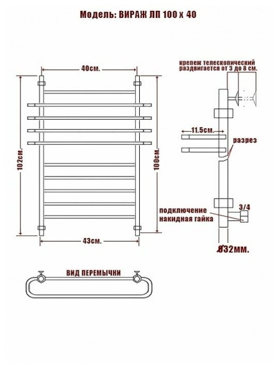 Полотенцесушитель Полотенцесушитель Ника MIX ЛП Вираж 100/40(-) УЦ