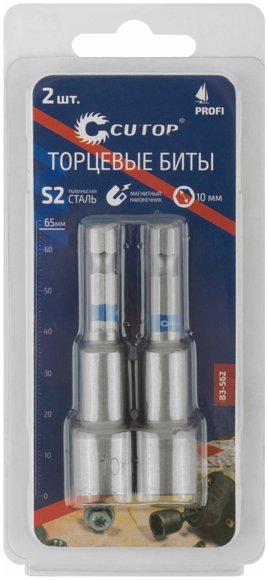 Набор бит с торцевыми магнитными головками 10 мм, 2 шт., CUTOP Profi, 65 мм (83-562)
