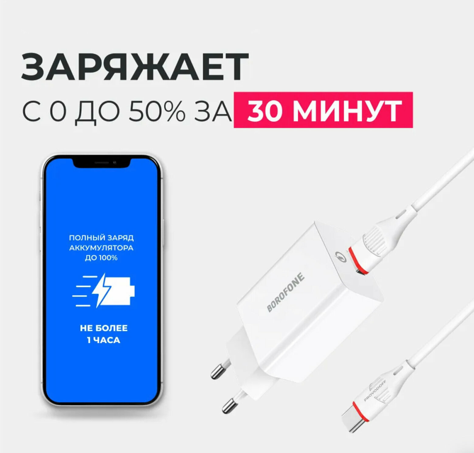 Быстрая зарядка для телефона с кабелем Micro-USB в комплекте / для смартфонов Android / сетевое зарядное устройство / адаптер питания / BOROFONE BA20A