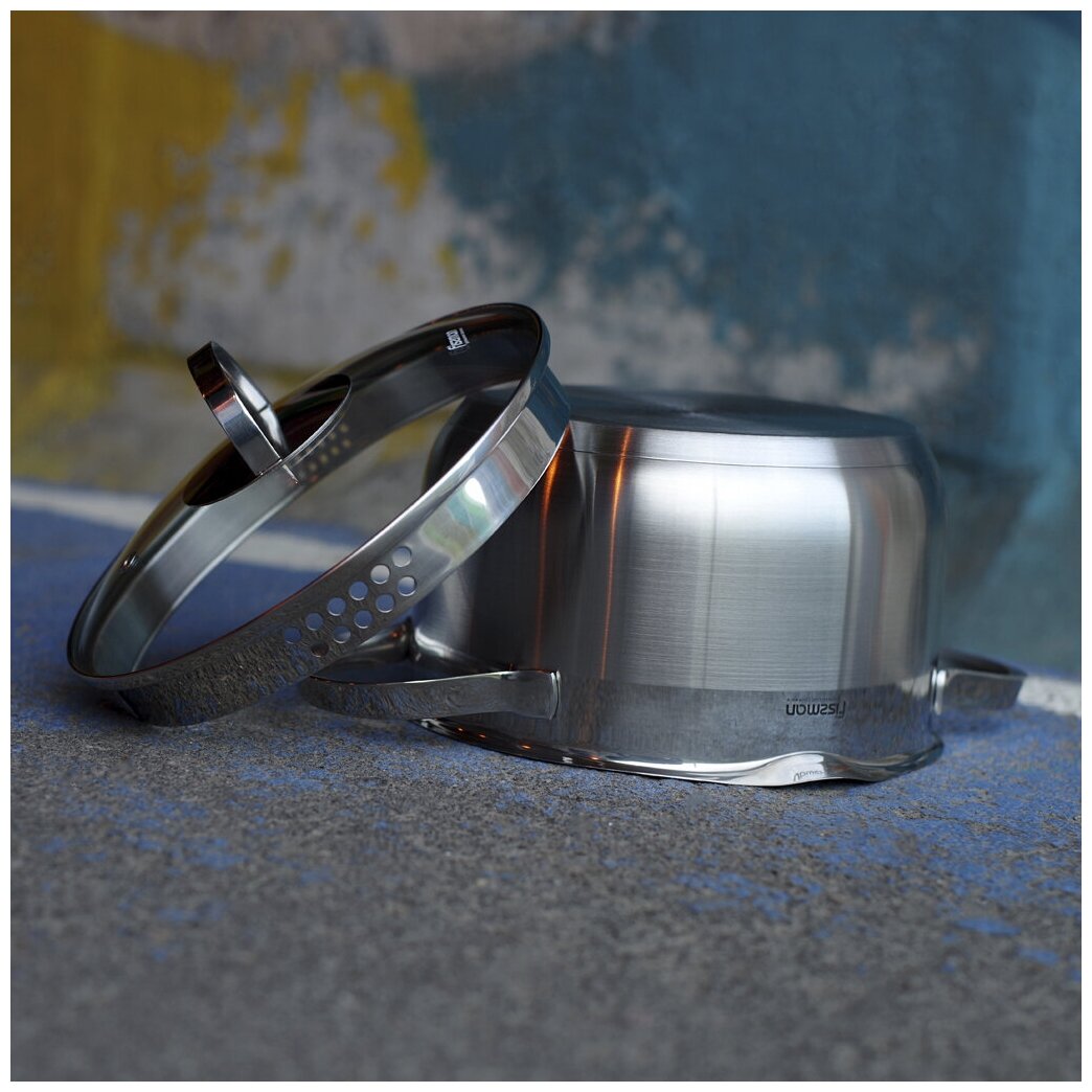 Кастрюля 5206 FISSMAN Кастрюля CALLISTO 18x8,5см / 1,9л со стеклянной крышкой (нерж.сталь) Ручки-нерж.сталь; Крышка-стекло с отверстием для паровыпуска и сливом; Индукция; Термоаккумулирующее многослойное дно.