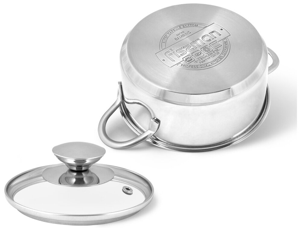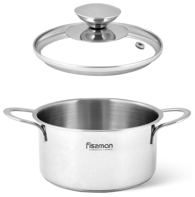 Кастрюля 5273 FISSMAN Кастрюля BAMBINO 14x6см / 0,9л со стеклянной крышкой (нерж.сталь) Ручки-нерж.сталь; Крышка-стекло; Индукция