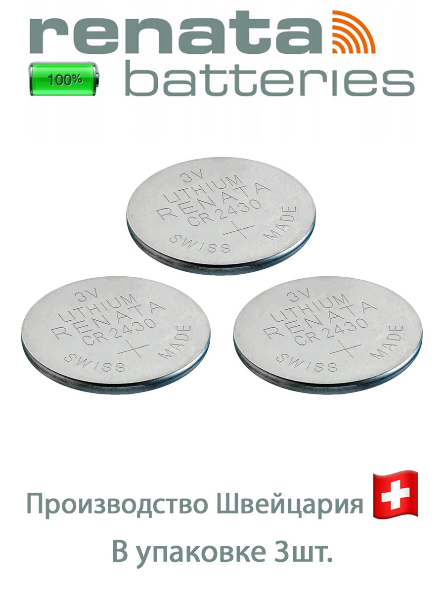 Аккумуляторная батарейка Батарейка Renata CR2430 3В литиевая , в упаковке: 3 шт.