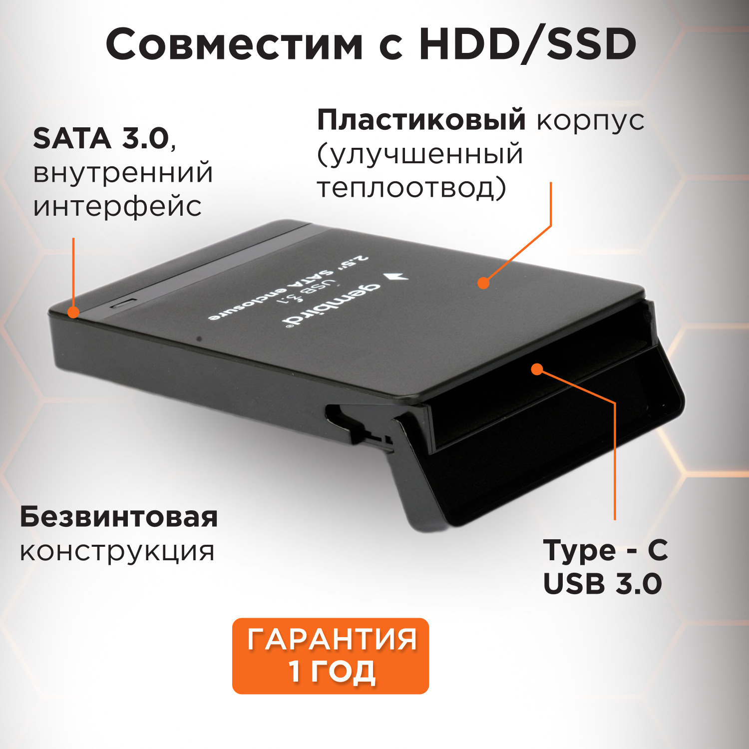 Внешний корпус для HDD 2.5" Gembird EE2-U31S-2, пластик, чёрный, USB Type-c