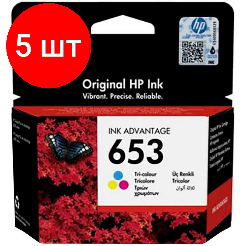 Картриджи Комплект 5 штук, Картридж струйный HP 653 3YM74AE CMY для DeskJet Plus 6075, 6475