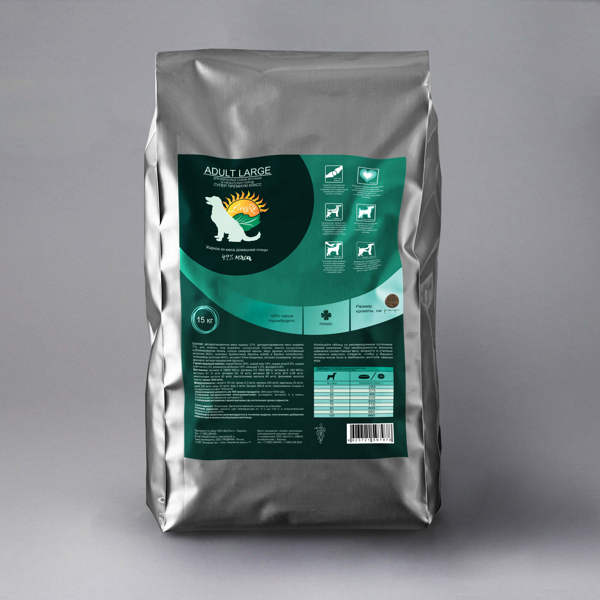 LiveRa Полнорационный сухой корм для взрослых собак гигантских пород Adult Large, 15 кг - жаркое из домашней птицы
