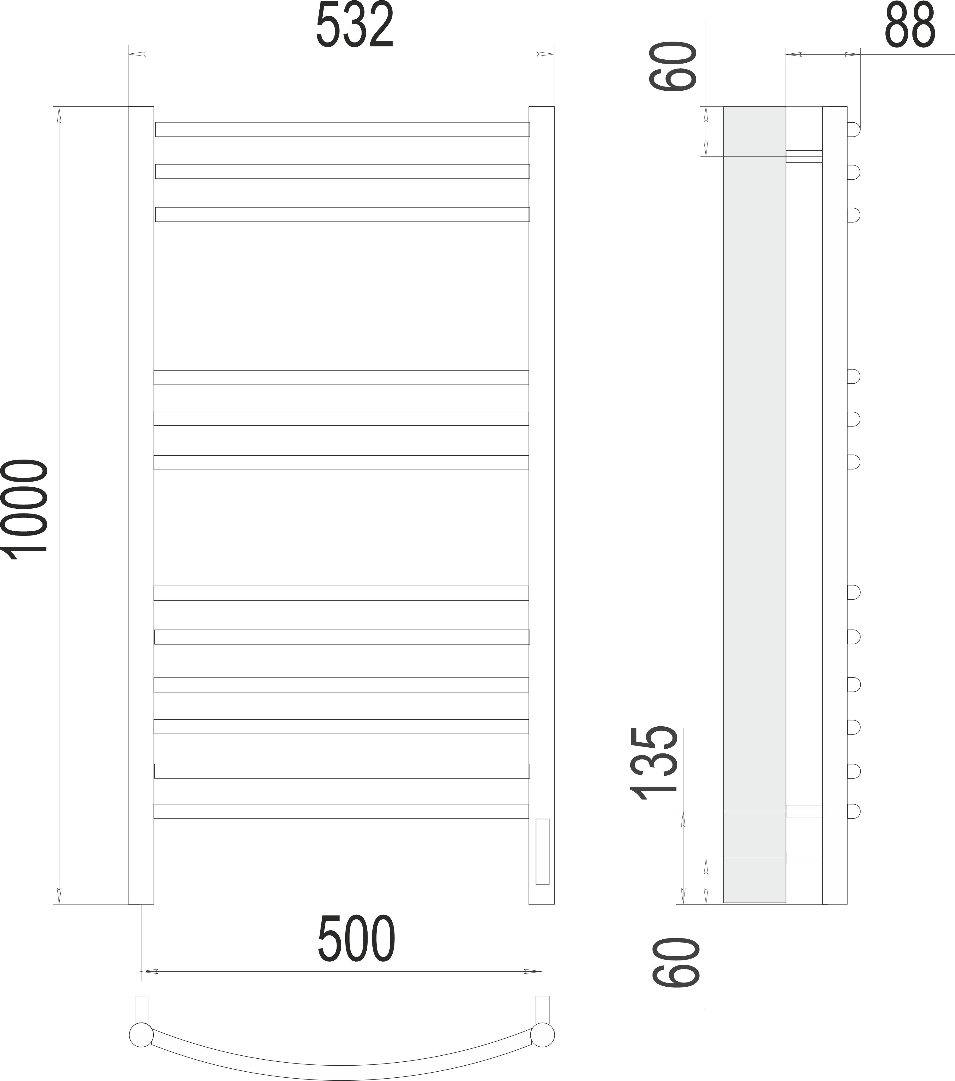 Полотенцесушитель Классик П8 500х800 боковое подключение