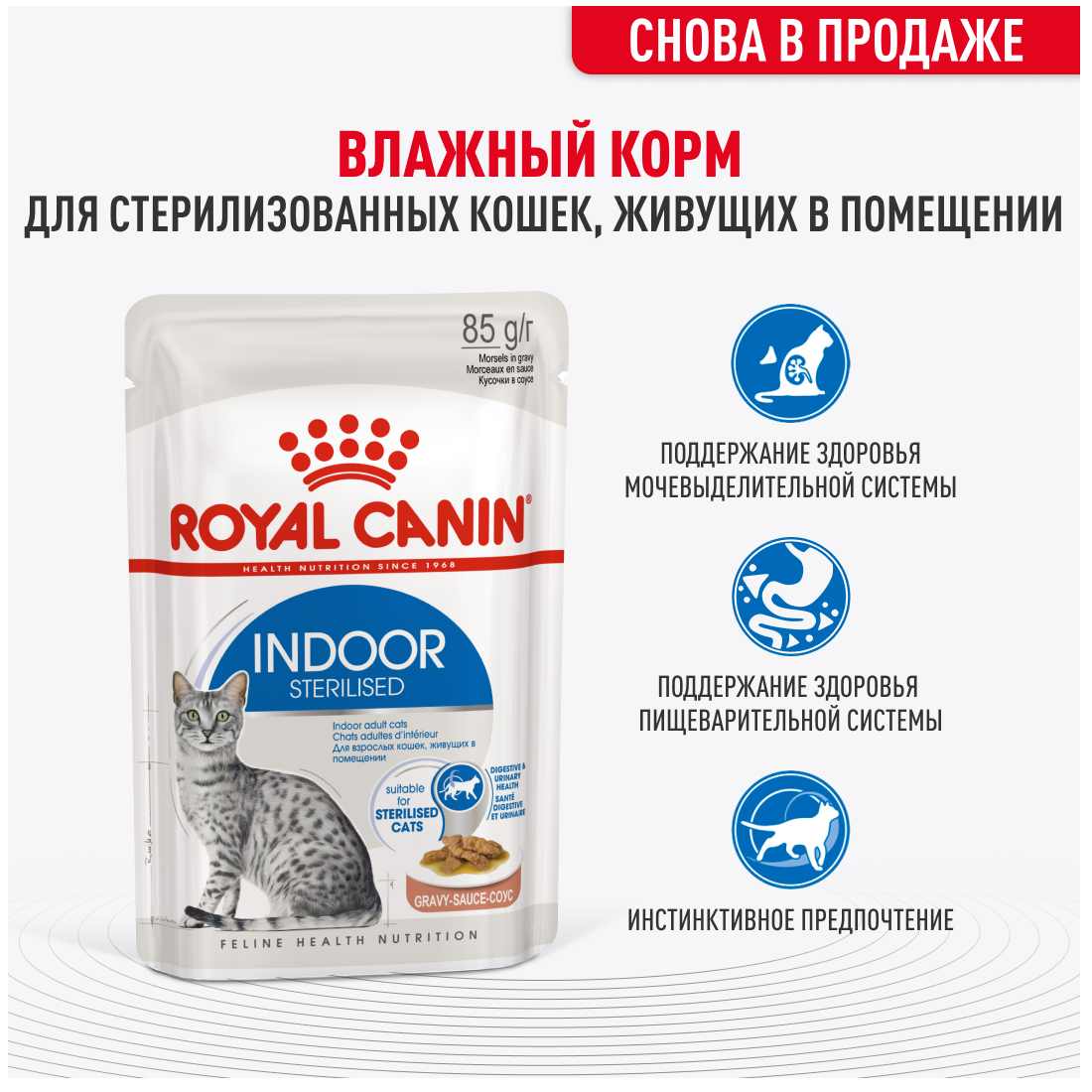 ROYAL CANIN INDOOR STERILISED для взр кастр кот и стерил кош живущих дома в соусе пауч 85 гр 85 гр х 5 шт 566 ₽ Подробнее
