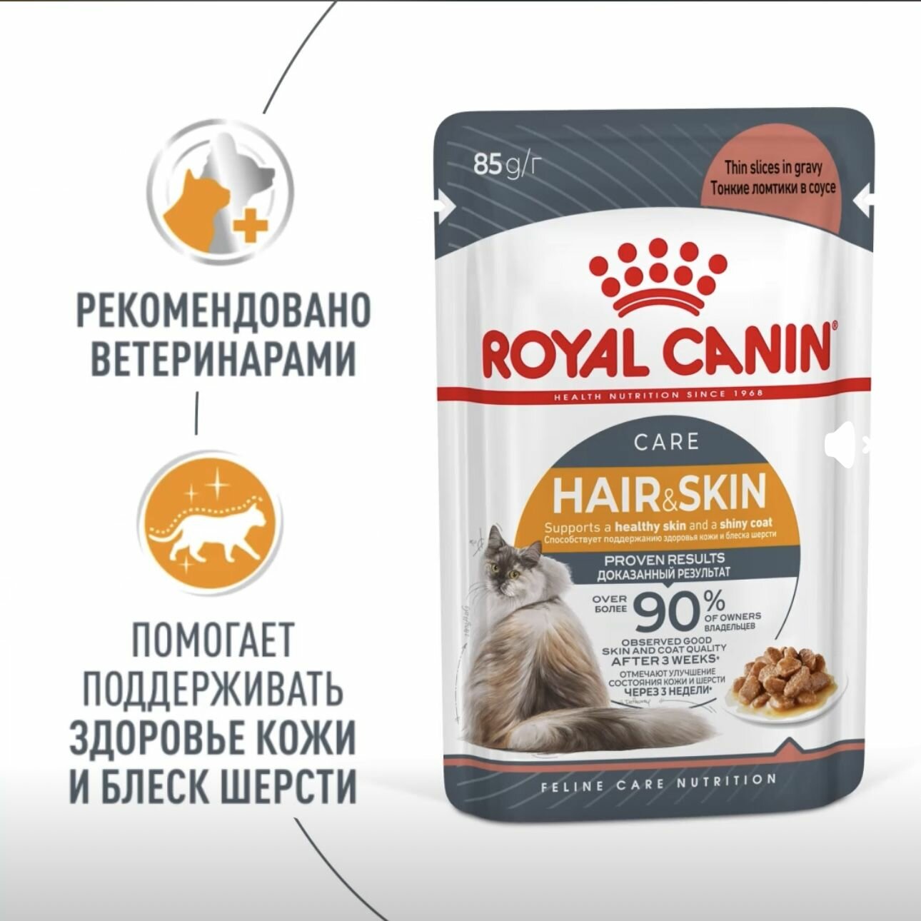 Корм для кошек Влажный корм для кошек Royal Canin Hair&Skin Care в Соусе для здоровья кожи и красоты шерсти 85 г х 10 шт