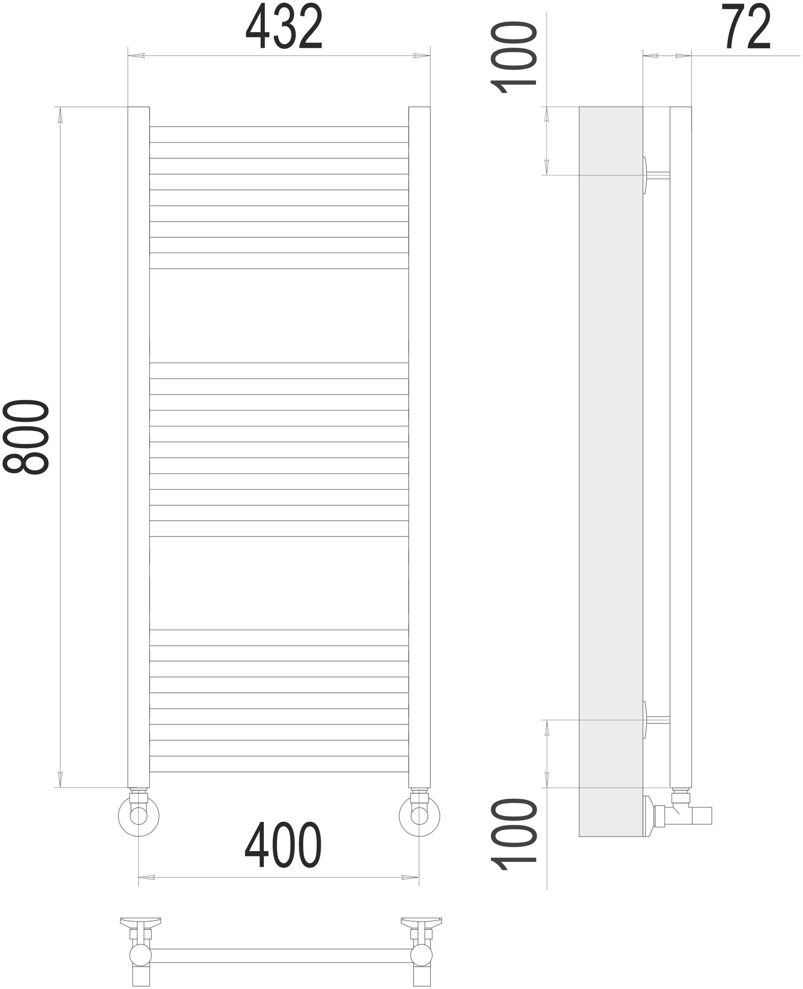 "Аврора" (скрытая проводка) электрический полотенцесушитель TERMINUS (432 мм / 850 мм / 400 мм)