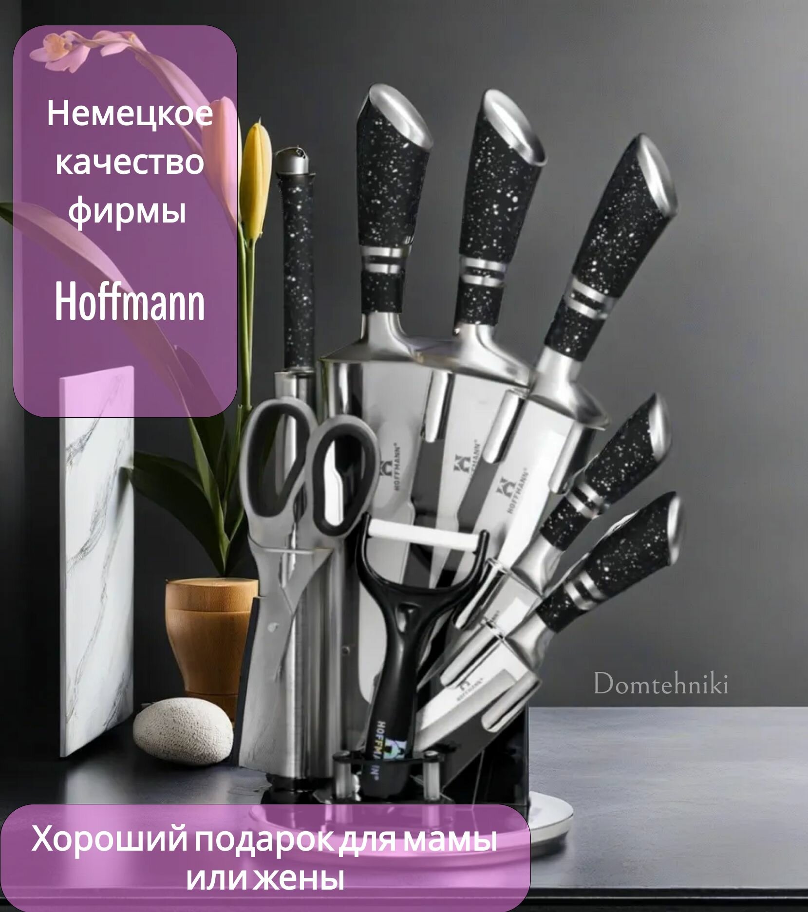 Набор Hoffmann НМ 66, 5 ножей и овощечистка с подставкой