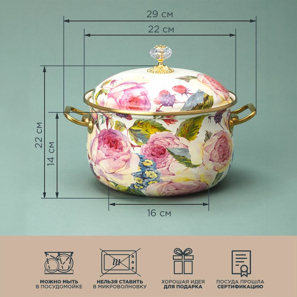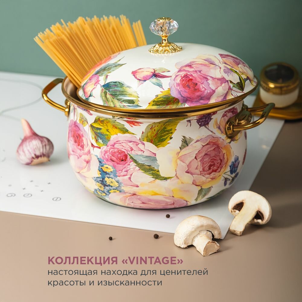 Кастрюля эмалированная с крышкой Vintage Flowers Объем: 6100 мл