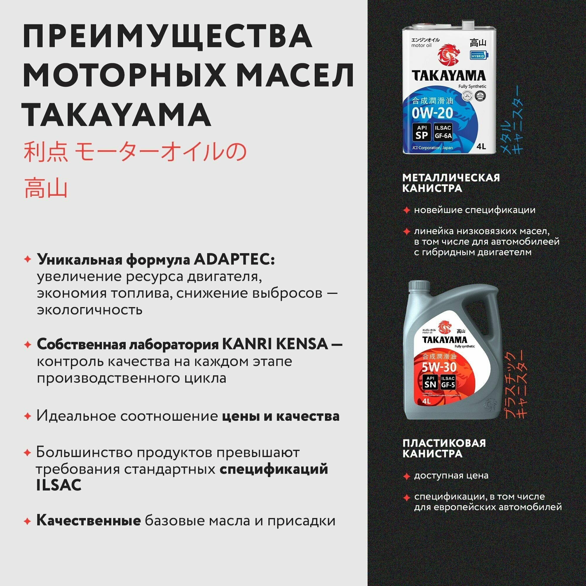 Моторное масло TAKAYAMA SAE 0W-30, API SP, ACEA A5/B5 Синтетическое 4 л